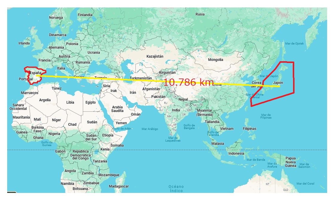 Japón y España mapa del mundo