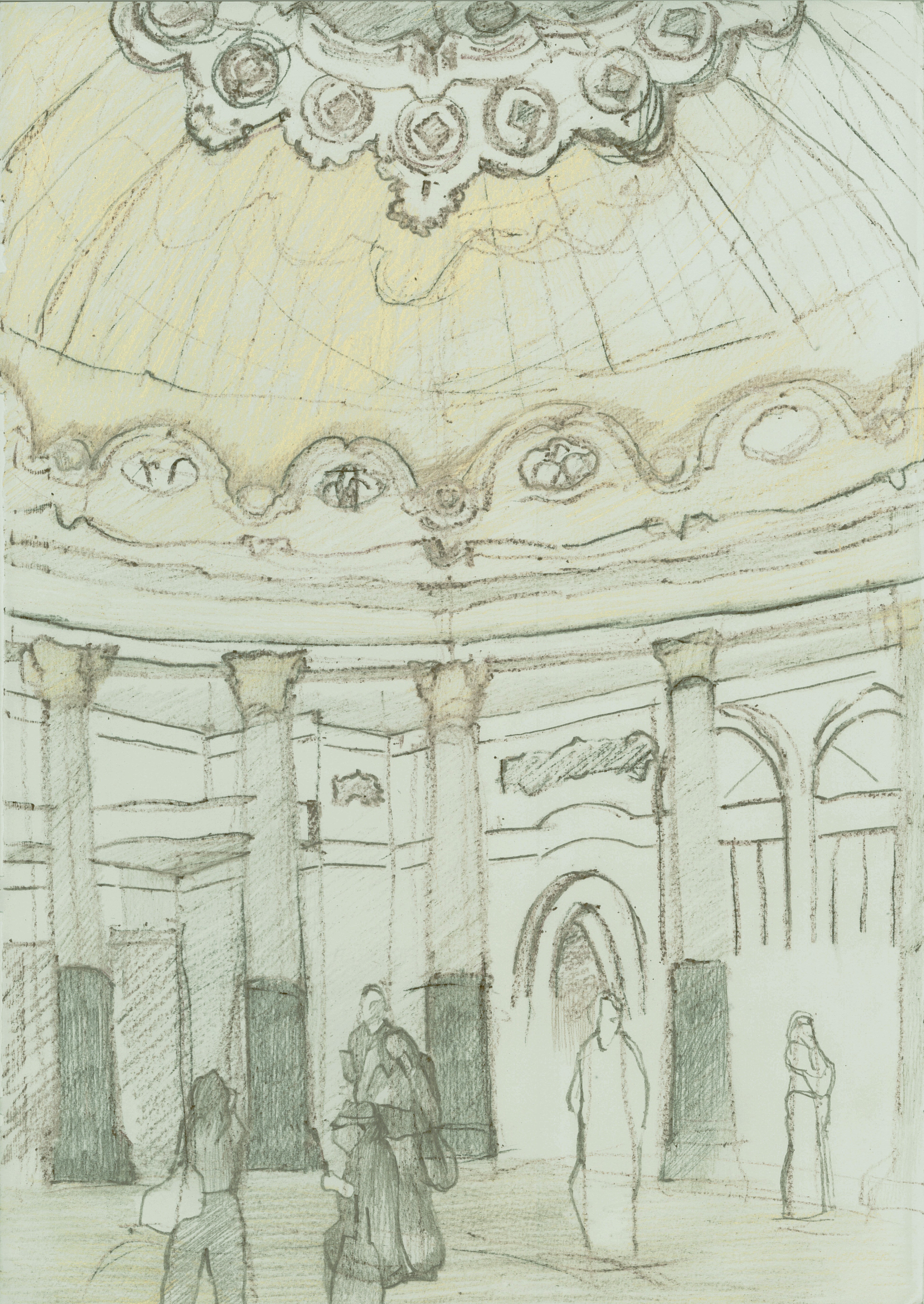 que la cúpula estaba sostenida por gruesos pilares de estilo griego o romano.Creo que probablemente sea un
